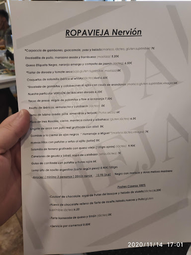 Editado: El 9/1/21 estuvimos en ropavieja centro, y la verdad es q mi apreciación de la marca ha caído bastante a partir de entonces. La sensación q tuve es q eran tapas de "quinta gama", ya que el supuesto "humus de ropavieja de puchero" era una especie de crema, demasiado líquida, con sabor a sopicaldo industrial y un puñado de picatostes "de paquete" por encima, cuya textura no tenía nada q ver con el humus... El boletus con parmentier, hígado de pato y yema a baja temperatura estaba bueno, aunque el hígado de pato brillaba por su ausencia... En cuanto al carpaccio de gambones, más que un carpaccio era "una especie de tartar", ya que apenas estaba prensado, y en lugar de una fina lámina eran gambones "espachurrados" (como si los hubieran cogido del fondo de la caja y los hubieran servido directamente)... Por último, el "lomo" de lubina asada con piña, almendras y teriyaki eran un par de trocitos de cola que, por su tamaño, no parecían ser de lubina, al menos no de lubina "salvaje", lo q me reafirma en mi convicción de que las tapas son de quinta gama y no las hacen en sus cocinas...