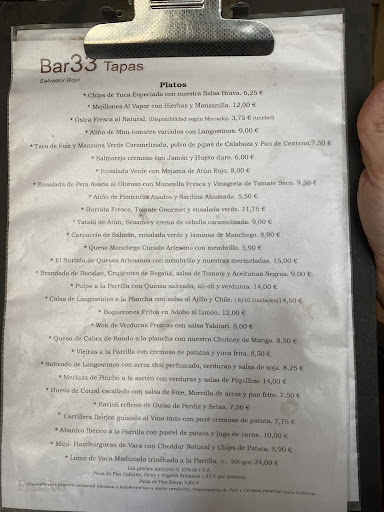 Read moreEsta reseña está centrada exclusivamente en mi experiencia en el Bar 33, el apartado para tapas que hay dentro del restaurante Salvador Rojo.