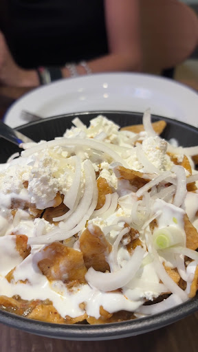 Perdimos un par de cervezas Modelo, muy suaves. La camarera nos explicó muy amablemente cómo funcionaban: buffet libre o a la carta. Los tacos tenían 2x1, así que pedimos a la carta. Nos decantamos por Chilaquiles verdes, que estaban insuperables. También un pase de tacos: k’ee ke y Villamelón. Estaban buenos, pero los totopos Chilaquiles están genial.