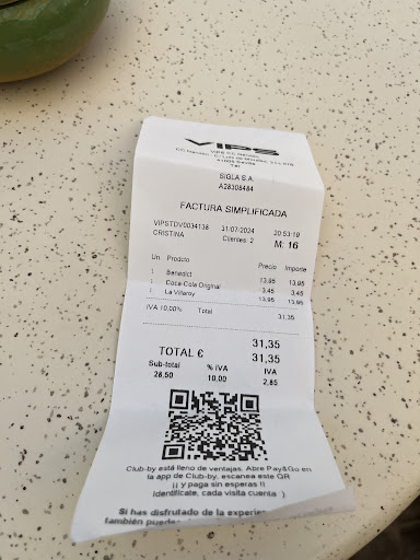 Read moreIt was my first time visiting Sevilla. I gave VIPS-Nervion a try on 13/10/2024 late afternoon. My overall experience was very negative because of the bad attitude from a waitress, Miriam. The tone of her voice she used to talk to me was very aggressive, unfriendly, and loud. After she brought the receipt to me, I briefly verified the items of my order. Miriam then impatiently explained in the loud voice that the info on the receipt is generated automatically and there isn't a need to verify. She then walked away impatiently while making more verbal complaints. I believe Miriam could be benefited from receiving additional customer service training. It's important for this restaurant to provide a friendly and comfortable environment for customers not just to the locals but...