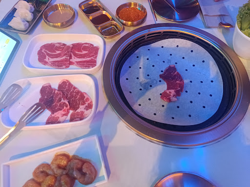 Read moreFuimos anoche y para una experiencia distinta está muy chulo, es un buffet, tienen tanto platos preparados calientes como los platos crudos que te los haces en la parrilla tú mismo, pero todo super bien explicado. Están super atentos para cuando tienen que cambiar el papel que hay encima de la parrilla, para bajar o subir la potencia de la parrilla también, te explican todo muy bien. La lechuga que se suelen ver en las fotos es porque en Corea acostumbran a hacer la carne, la ponen en una salsa y entonces lo enrollan en la lechuga. Nosotros no somos muy fans de la lechuga tal cual, pero enrollada en la carne con su salsa en forma de burrito está buenísimo!! Se pide por una tablet, un máximo de 10 platos (las bebidas no cuentan como plato pedido y se pagan aparte, al igual que 2 salsas, la de cacahuete y una picante, son 1€ cada una). De bebida tienen el sake, que tenemos entendido que es una bebida bastante típica de corea, vale 10€ la botella. La calidad, comida y servicio son un 10, hay platos que pueden gustar más o menos, pero en general está muy bueno todo.