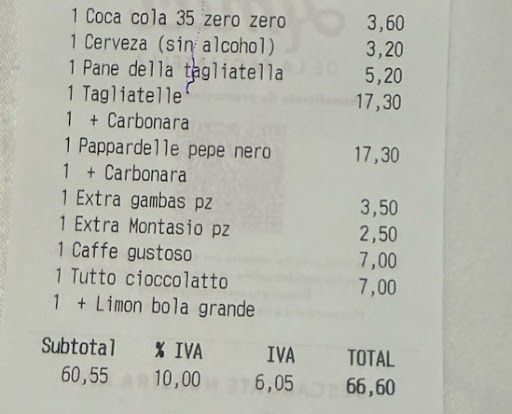 Después de esta reseña hace unos meses me anime a volver y bueno no fue muy diferente. Esta vez nos dejaron esperando más de media hora después de pedir y a los de la mesa de al lado en menos de 10 min les llevaron el PAN de la casa y a nosotros nos lo pusieron después de traernos los platos, eso si los rabioli y tortellini estaban bien pero el PAN de la casa literal que no lo pudimos comer porque estaba quemado. Así que sintiendo lo mucho despues de ser clienta habitual( todas las semanas) me pusieron la salsa cortada y les dio igual q estuviese en mal estado y no comiesemos y después de 7 meses decido en dar otra oportunidad y me ponen el PAN completamente quemado después de dejarnos esperar mientras a los demas que vinieron después si les servian, así que ya no doy más oportunidades....