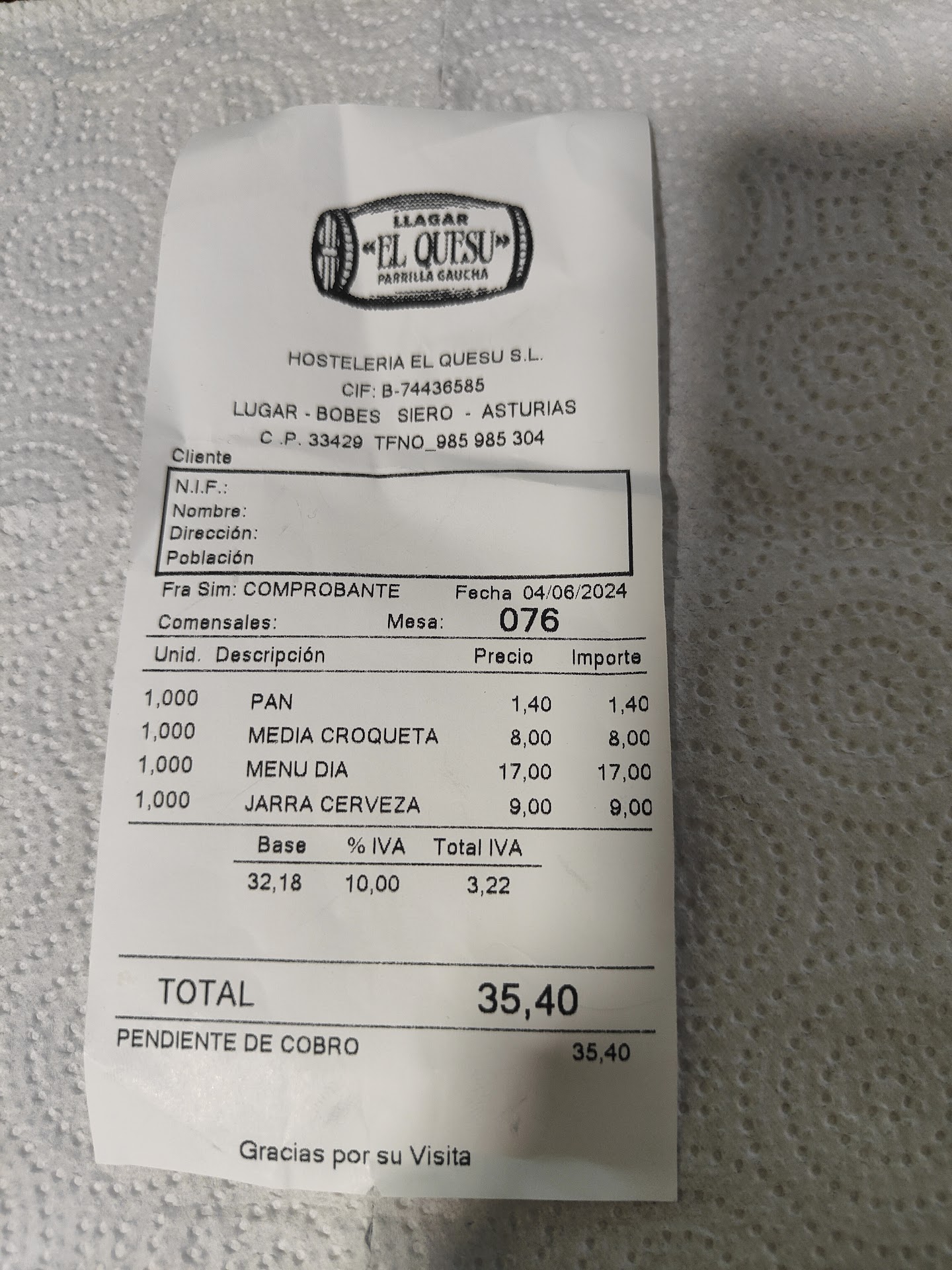 A todo esto tengo que añadir que por parte de los camareros y del parrillero eran todo risitas y comentarios mirando hacia nuestra mesa, con mucho descaro, q era la unica que habia a esas horas .Cosa que la verdad no nos sento muy bien, y q por lo que veo de otros comentarios es un deporte habitual entre ellos.