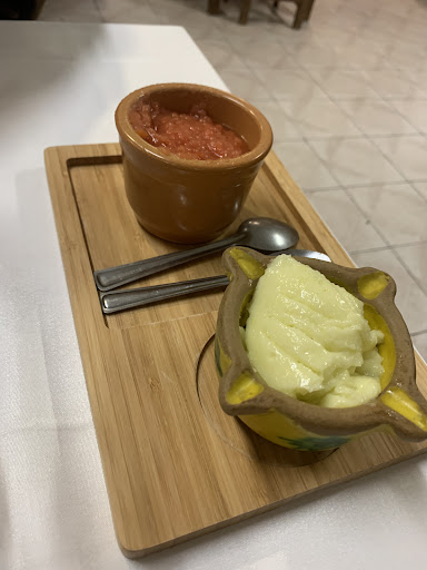 Read moreFuimos un sábado que eran fiestas en los pueblos de alrededor y tenían sitio de sobra, reservamos igualmente, tienen una sala enorme y muy elegante. Al llegar informamos que yo era celíaco para saber que tenían disponible y si controlaban el tema de la contaminación cruzada nos habló un señor que sabía mucho del tema. Al momento de comer puedes comer la mayoría de cosas, excepto rebozados y lo obvio, por el tema del pan tienen pan sin gluten una especie de tostadas que estaban muy ricas (el pan no te lo cobran) y las salsas estaban muy buenas, nos sacaron Alioli y tomate fue un detalle que nos sacaran una para los con gluten y otra para los celíacos, solo nos cobraron un par. La comida estuvo muy buena y nos atendió un chaval muy majo y muy atento. La razón por la que les quito una estrella ha sido una confusión a la hora de los postres que yo pedí un postre que pensaba que era sin gluten y me vino con galleta (tarta de 3 chocolates) si leen esto les recomiendo que cuando digan los postres a los celíacos no mencionen los postres caseros porque es muy difícil de controlar. Pero lo recomiendo para todos los celíacos porque da gusto comer en un sitio dónde comes comida normal...