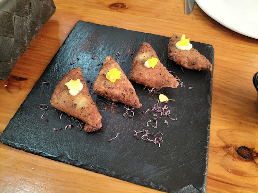 Restaurante sobrevalorado. No entiendo muy bien las reseñas tan buenas, cuando mi experiencia fue bastante floja. Tienen 4 menús (15€, 19€, 25€ y 30€, si no recuerdo mal). Yo opté por el menú de 15€ ya que al ser un día entre semana y haber tenido buenas experiencias por la zona con menús a ese precio, entendía que podía ser una opción aceptable. Nada más lejos de la realidad. Este menú no corresponde a un menú de más de 10€. Los platos eran los siguientes: