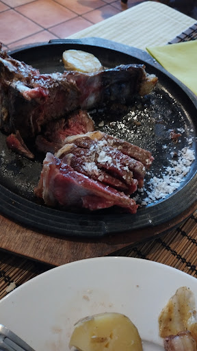 Read moreLovely place for a sunset meal, over looking a valley and mountains. Indoor and outdoor terrace. Food was delicious. Had gluten free alternatives, the bread was also cooked over the fire!! So tasty!! If you're a meat eater and love a thick steak then this is your heaven. 1kg steak cooked over hot coals. We had the fish and that too was delicious. Would highly recommend!!! Service was wonderful and...