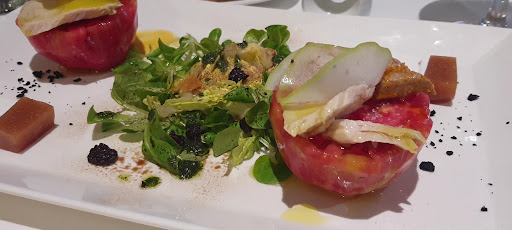 Estuvimos un día entre semana ,pensábamos buscar un sitio especial de calidad, pero no comida copiosa estábamos de trabajo ,mi marido tiene problemas cardíacos graves y yo hipertensión y coresterol así que optamos por dos entrantes de unos 10/12 € cada uno ,consistían en tomates con atún y queso y mermelada , nosotros somos un poco sibaritas pero comemos poco y menos de ruta ,decidimos otro entrante para compartir que era un calamar supuestamente a 7€ el kg ,nos informo el dueño que igual sobrepasaba el precio según peso,Bien, era normal y entendible, hasta que empezó a replicar por lo poco que habíamos pedido alegando k sus clientes pedían abundancia un entrante y un plato principal entre 35/70€ plato principal,nos percatamos que lo importante parecía que era hacer el mayor gasto posible,nos sorprendió que no tuvieran menú, el dueño decidió por nosotros y nos trajo un plato para cada uno de calamar con cosas patatas etc para sorpresa nuestra y nos cobro 22€ a cada uno, además de los entrantes 10/12€ cada uno,estaba delicioso pero nos tuvimos que llevar un táper, está muy bien si te quieres y puedes pegarte una pripada considerable, 100€ pagamos por los dos y todavía no sabemos en qué momento no nos entendió el dueño ni de dónde saco el precio del calamar, el sitio no nos pareció para nada relacionado con los precios que se manejaban ,hemos comido igual o mejor por la mitad y en sitios mejores,cuando insinuó que sus clientes comían copiosamente y no miraban precio nos hizo sentirque no estábamos en un sitio adecuado para nosotros estuvimos a punto de levantarnos e irnos..como experiencia gastronómica muy buena ,pero no volvemos mas y no...