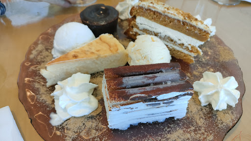 Mesa reservada para 6 comensales. Suele ofrecer 2 menús. Uno de 15€ y otro de 20€. En este caso, se pidió un menú "especial" cerrado, con bebida incluida, que costaba 40€ por comensal. El local limpio. Espacio entre mesas correcto. Y la cocina está bastante bien. En esta ocasión, el arroz meloso de bogavante (a mi gusto) quedó demasiado entero. Pero nunca llueve a gusto de todos. Eso sí. La ración, cumplida. Por lo demás, suele estar en la línea de bueno. Los calamares y puntilla, buenos. La tabla de queso y jamón ok. El jamón algo justo de sabor, y se podía haber puesto variedad de quesos. Las gambas, tengo mis dudas, pero daremos un voto de confianza (que iluso soy). Los filetes de entrecote, tiernos y de un buen tamaño. El postre consistió en un plato común para todos, me parece muy ruin, habiendo pagado lo que se pagó. Pienso que lo suyo, es que cada uno pidiera lo que quiesiera, ya que está bien pagado, y no se abuso para nada de la bebida. Tuve alguna decepcion con anterioridad, avisando con bastante tiempo para menú concertado (bautizo) en el que se nos jugó una mala pasada, hace ya algo de tiempo, y en el que no se puso medio ni nada para paliar los errores. Funciona por la buena cocina y eficiencia de las trabajadoras. Genecia soberbia y con malos modales según el día y el momento. Y en el lugar, la...