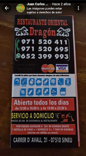 Read moreWhat a great find! Dragon deliver to a really wide radius of homes from Sineu. The phone staff and delivery driver were very helpful, polite and efficient. The food was delicious and really exceeded expectations.The Pecking duck was yum yum yum! We'll definitely order again. Thanks...