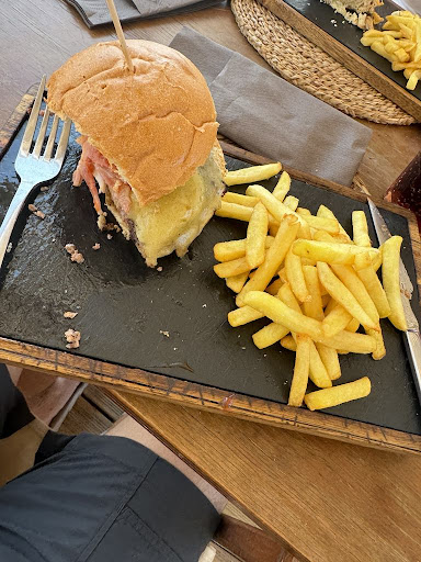 Such disappointing place. Starting off with not being even noticed by the vaitress we than ordered 2 burgers. The meat was unseasoned, not even with salt, there was almost no sauce on the buns and there wasnt any vegetables so the whole burger was too heavy and plain. The fries were okay. We took Coke to drink but becouse we havent gotten any menu we didnt know that it was 3,20€ per 330ml... Lastly we asked the staff for receipt but they must have forgotten about us becouse we waited for the next 10min.