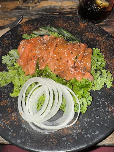 En mi caso pedí la ensalada de sashimi. El sabor estaba muy conseguido, la salsa espectacular y combinaba muy bien con el pescado. Eso sí, había algunos detalles diferentes a lo que ponía en la carta: se anunciaba col verde y pipas de calabaza, pero la col nunca apareció (imagino que fue un error o adaptación), y de pipas encontré solo dos o tres. También figuraba cebollino y lo que trajeron fue cebolla normal. Son detalles pequeños que no deslucen el conjunto, pero que convendría cuidar para que lo que se sirve coincida con lo que se anuncia en carta.