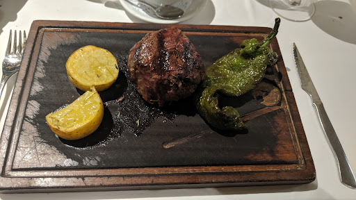 As mentioned in other reviews we were greeted with a glass of cava. The menu was unpretentious and not over complicated, which is something that I'm always happy to see; an over ambitious menu often results in middling dishes in my experience. We opted for the empanada and the buffalo mozzarella with tomatoes to start. Both were excellent. For the main we both opted for the Ribeye steak and I can honestly say it was the best I've had since one very special restaurant I recall from my month spent in Argentina. It's so good that we plan on returning to Sitges just for this when we're next in Barcelona.