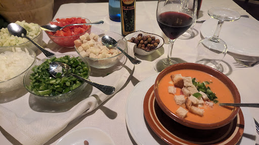 Read moreWe went into this restaurant for dinner, on a Friday evening without reservation, and we were seated outside. We ordered drinks and gazpacho as an appetizer. For the main we ordered the salmon with vegetables and the ribeye veal that came with potatoes and allioli. I found the appetizer pretty good, but we found the main courses average at best, without having a lot of taste. We also found that the ingredients used could have been of higher quality here. For desserts, we ordered ice cream and profiteroles. The desserts were not very tasty either, especially the profiteroles which tasted like they were made with low quality canned whipped cream only. Service was friendly and nice to us, and with both locals and tourists alike. The restaurant is located in a traditional farmhouse setting, close to Sitges, and has rustic atmosphere to it, but we found some areas inside smelled a bit old or odd. Overall, not sure if we would return here,...