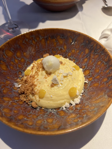 Now, the main dishes. The fish is spectacularly great. Perfectly balanced, crispy skin and plate licking flavours. Please try this, even if you are not a fish fan. I dare you to not love this dish. The steak. Absolute perfection in all aspects of steak. Size, medium rare, seasoning, resting, tenderness, searing… chefs kiss! Possibly the best plate I will have 2024.
