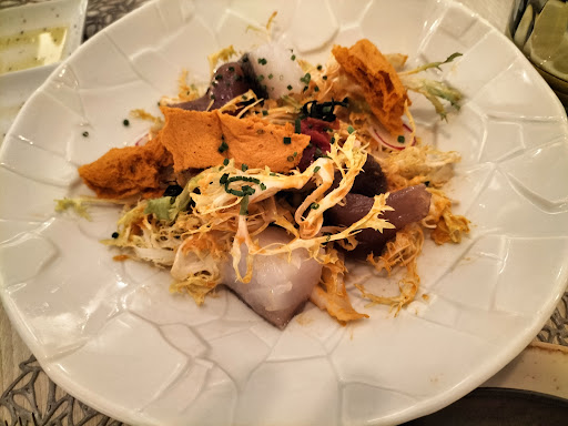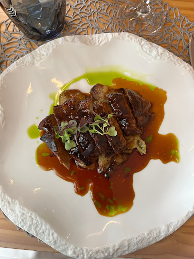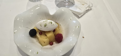 Great experience in this restaurant. Went on a Thursday very early and the restaurant was pretty empty, so the maître put us on a table by the window, with very pleasant view. The staff was very nice and the waiting time was reasonable. They offered us an amuse-bouche of melon foam with grated jamón that was great. Entrances were amazing, really recommend getting the cream of topinambur. As main, the suckling pig was really good as well.