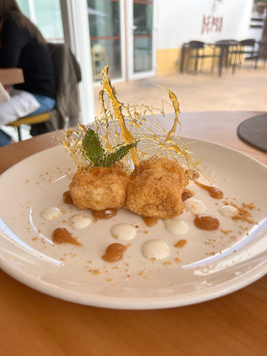 Read moreEramos 2 y fuimos por recomendación. Un acierto total, el ambiente es super acogedor y muy bien decorado. Tiene una terraza pero nos sentamos dentro al lado de una cristalera que daba al patio y estuvimos muy bien. Los camareros son super amables y muy atentos. La comida estaba deliciosa y con una buena presentación. Pedimos de entrantes la tabla de quesos y los gambones con huevos fritos eco y estaban deliciosos. Nos dijeron que los quesos eran todos de la zona y los gambones eran de calidad y muy bien hechos. A continuación pedimos el plato de pasta fresca con salsa de castañas y el plato de pulpo a la brasa. Espectaculares, la pasta estaba riquísima y la salsa la complementaba genial. La única pega es que el pulpo estaba un poco duro para mi gusto particular pero suele pasar con este plato. De postres pedimos el gazpacho de fresa con sorbete de Pepsi y las croquetas de tarta de queso. Recomedamos muy ampliamente que probeis las croquetas porque estaban espectaculares, se deshacían en la boca y era una explosión de sabor. El gazpacho no se queda atrás pero para mi, las croquetas es el postre estrella. En resumen, es una experiencia de 10/10. Se nota que la materia prima que manejan es de primera calidad al igual que sus cocineros....