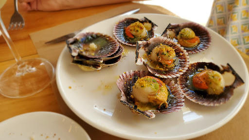 Carta corta con platos que permanecen y sugerencias diarias que son lo que hay que mirar. Una ración enorme de ensalada de tomate con conejo escabechado (Tomate sin pelar. 14,75€) donde los sabores no mezclaban bien y sobraban los arándanos. Mejor la ensalada de bogavante (30€), bien presentada. Un simple mézclum con cherries y el crustáceo suculento. También abundantes las zamburiñas a la plancha. Llenas, sabrosas y jugosas. Un plato sencillo que es fácil de encontrar en la zona, pero no con esta calidad ni este punto de cocción. Peor resuelto resultó el bonito, plato recomendado que resultó seco y poco sabroso. Acompañaba una patata escachada que cementaba en vez de aligerar. Postres correctos, sencillos y bien elaborados.