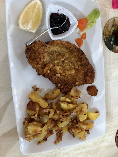 Read moreEssen: Das Essen war wirklich leider sehr sehr schlecht. Wir haben keine sehr hohen Anforderungen, aber dort war es wirklich sehr enttäuschend. Das Schnitzel wurde leider so gut wie garnicht gewürzt und hat nach nichts geschmeckt sodass man eine Sauce brauchte, die Panade hat nach altem Fett geschmeckt und das Fleisch war Daumen-dick. Die Jäger-Sauce war viel zu dickflüssig und hat sehr stark oder eigentlich nur nach Speisestärke geschmeckt. Das Salatbuffet war groß und vielfältig, leider aber schon sehr leer und ein wenig welk. Die Bratkartoffeln waren hingegen sehr lecker. Positiv sind jedoch die Preise. Da kann man sich wirklich überhaupt nicht beschweren. Ein kleines Schnitzel mit Pommes oder Bratkartoffeln, ein Salat vom Buffet, eine Sauce nach Wahl und einem kleinen Getränk für 14,80€, das ist wirklich unschlagbar günstig.
