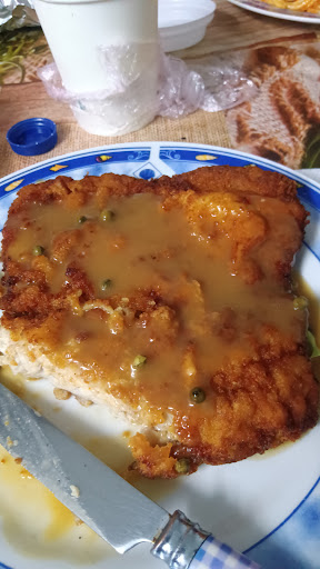 Read moreHemos pedido a través de a taula no se si será por eso o por pedir de noche y que lo han echo deprisa y la verdad una imagen vale más que mil palabras. La salsa a la pimienta parecía agua ,además de bastante sosa y las patatas a ver son congeladas (por lo que hemos pagado milagros a Lurdes)pero al menos en mi caso parecía que comiera cartón y no me las he podido acabar por ello ,lo que nos ha salvado es que el escalope de pollo el rebozado no estaba nada mal aunque la carne estaba bastante dura, malo no estaba y los espaguetis boloñesa ?bueno son mejorables pero no eran malos ,solo que venían pocos .No iba a hacer una reseña mala pero la salsa a la pimienta y las patatas podrian estar mucho muchísimo mejor pero bueno por lo que hemos pagado ....puede que un día de apuro repitamos pero ya sabemos que es lo que no vamos a pedir a parte de la ensalada envuelta y aplastada en papel...