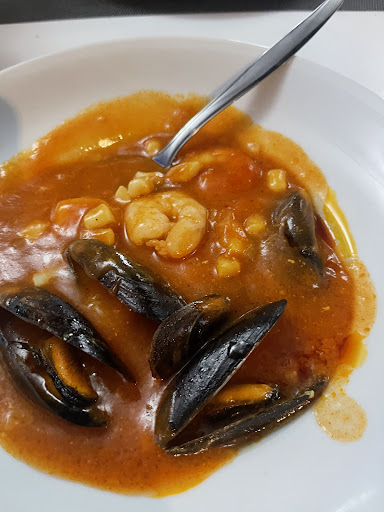 After almost hour of waiting I got warm seafood soup which was tomato cream with few shrimps and mussels. Sweet cream. Pasta Neapolitana was served with soft spaghetti and flooded with sauce.