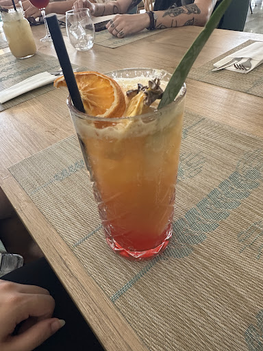 The mocktail I ordered was delicious, super refreshing for the scorching heat. The hamburger in the picture was delicious and the side of fries just perfect.