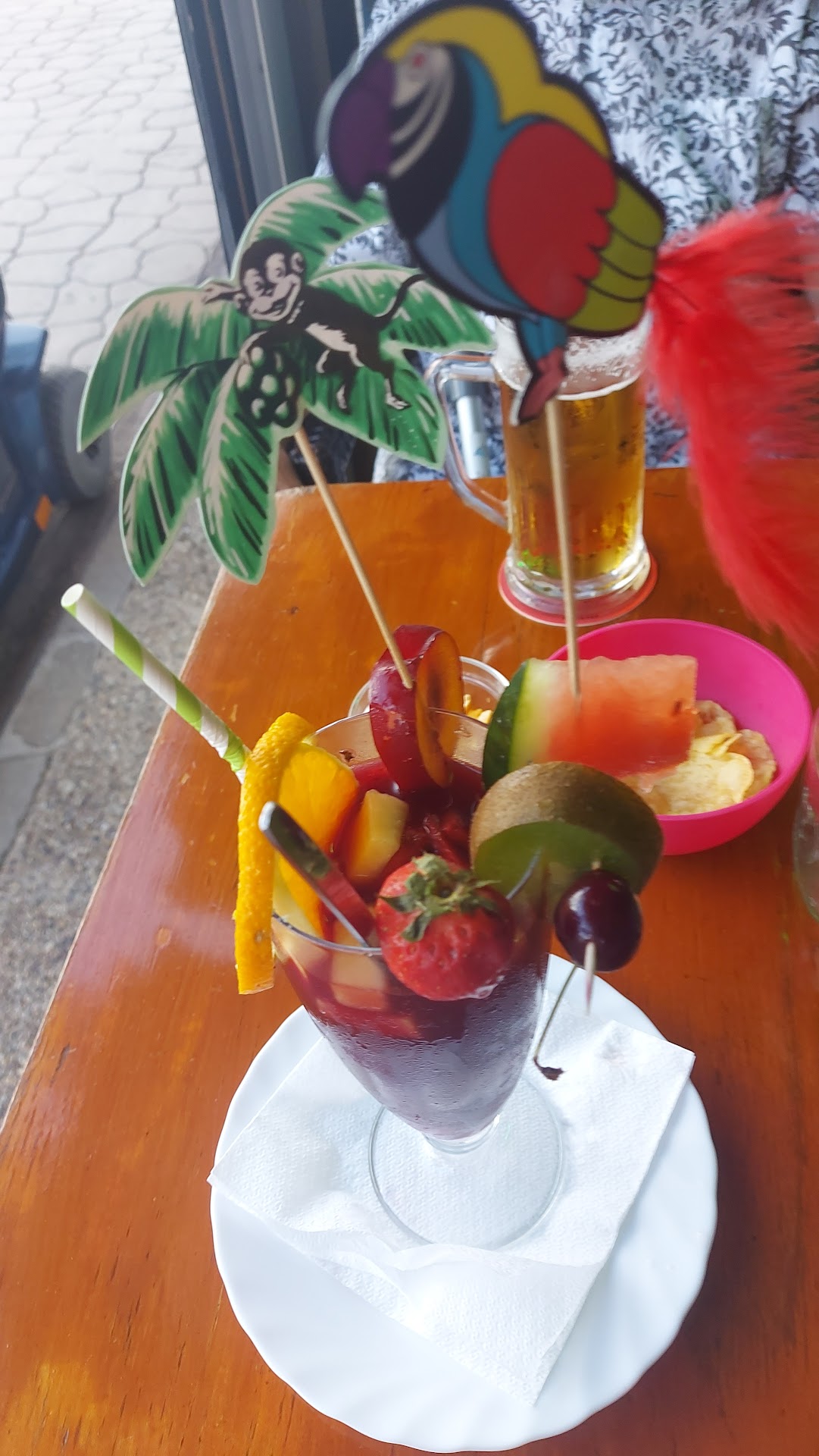 Von dem Moment an, als ich die Bar betrat, wurde ich von der exotischen Atmosphäre und dem freundlichen Personal begrüßt. Die Einrichtung ist geschmackvoll gestaltet, mit bunten tropischen Motiven und bequemen Sitzgelegenheiten, die einen sofort in Urlaubsstimmung versetzen.