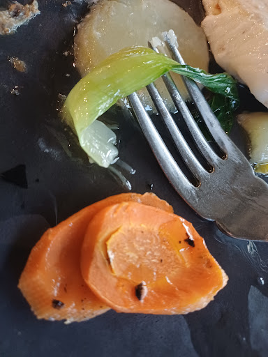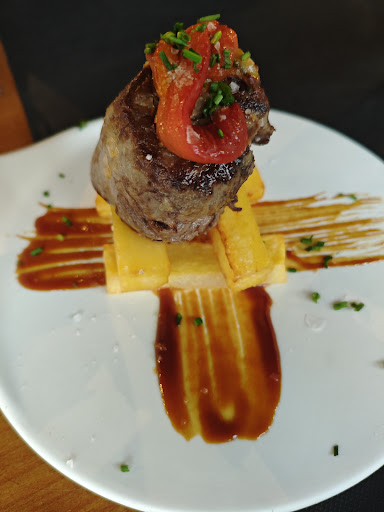 Maybe the language barrier, but you have to figure out for yourself that the starters are massive and can be shared, but the mains are small, except for the specials which are huge- A weird blend of rustic and fine dining. The scallops were nice enough as were the other starters. On the mains there was a weird tendency to stack the food unnecessary in the middle of the plate with no thought as to why? Maybe to cover the sorry amount of vegetables hidden under there.. The skin on the turbot had not been cooked and was soggy, maybe remove that next time if it's not pleasant to eat. On the presumtion my wife would like her steak rare, that was served on top of the chips, leaving them to go soggy before they had hit the table. The cheesecake was nice but not like the traditional Basque style that I have grown to know and love. Overall not...