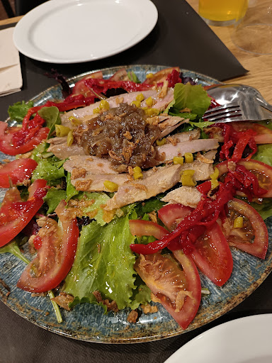 Paramos de casualidad, pedimos una ensalada de ventresca buenísima, creo una de las mejores que he probado. De segundo una hamburguesa MITIKA, exquisita, con un sabor espectacular, la carne buenísima, en su punto, el pan riquísimo que te dejaba disfrutar hasta el último bocado acompañado de la salsa batzoki que estaba para...