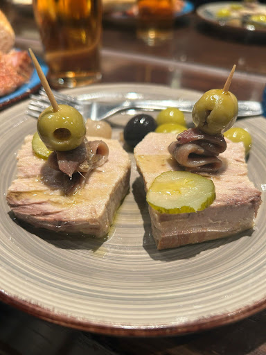 Pedimos un torrezno y la verdad es que dejó mucho que desear (Pasado, seco y sin nada de interés, parecía hecho de días). También tomamos tortilla de patata (estaba buena) y por últimos dos Tacos de Bonito (Estaban buenos).