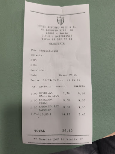 Para ser objetivo: La ensalada César estaba buena, pero bañada en salsa. No dudo que lo tuviese, pero no vi el parmesano. El sándwich Rey Alfonso, un 3.5: pan tostado reblandecido, el atún era una crema y la verdad, se parecía bastante a un sándwich de gasolinera. Aún así, la comida no es mala. Ésta descuidada, eso sí. El servicio deja mucho que desear. Y no es que hagan mal su trabajo. Es que el trato es de excesiva confianza, con salpicaduras de desdén y falta de amabilidad. Yo no soy su amigo ni su primo, señora. Soy el cliente. Y pagan justos por pecadores, porque un par de ellos eran amables y cuidaban algo más...