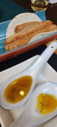 La mayor decepción fue la fajita de pollo que tenían con opción vegana. Valía como 12'5€ dos fajitas, que eran de grandes como un platito de taza de café. Tenían muy poco relleno, cinco palitos de zanahoria y una apenas perceptible cebolla. El sustituto del pollo según el chico, era una receta del local que hacían con avena prensada. La verdad es que no sabía a nada y era lo que más había en la fajita. 😞 Aquí nos quedamos con hambre. Le comenté al chico que habiendo ya tantas opciones veganas que pensaran en poner sustituto del pollo en condiciones porque cobrar por una fajita de avena 12'5€ ya me parece, como diría Nathy Peluso, un delito!