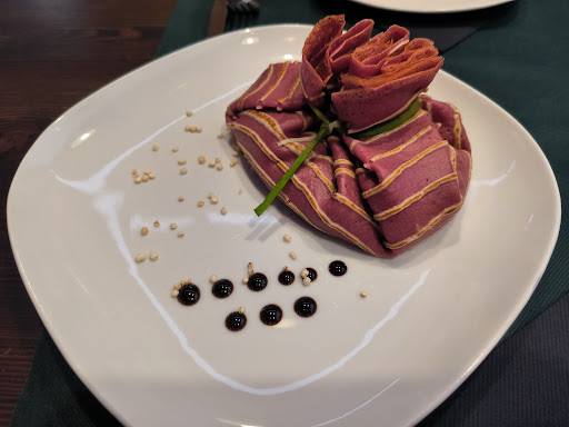 He estado varias veces a lo largo de los últimos 5 años y solo puedo tener buenas palabras. La primera vez que estuve acudí pensando que sería una crepería como otra cualquiera, con la peculiaridad de que es 100% sin gluten. Mi sorpresa empezó al ver la carta. Platos de calidad, de temporada y de cercanía poniendo en valor productos como los hongos, verduras y la trufa. Dispone de una variedad de entrantes , crepes y platos vegetarianos como dije antes todo ello sin gluten. Estos platos están muy cuidados y se nota que ha habido un estudio y desarrollo para crear por ejemplo crepes con una vuelta de tuerca,huyendo de la típica crep de jamón y queso. Destaca en su cocina técnicas de vanguardia como el uso de gelificantes en su ensalada de gominolas o la fusión con ingredientes asiáticos. Cocina cuidada con ingredientes de calidad. Me gustaría destacar que el dueño suele atender personalmente recomendando platos y anunciando los que están fuera de carta, explicando perfectamente en qué consiste el plato o que idea quiere transmitir. Otro apartado destacable es su carta de cervezas, teniendo variedad de ellas inclusive cerveza artesana sin gluten que hacen ellos mismos. Aun no he podido probar toda la carta, además suelen modificar y añadir platos cada año que he ido, pero no deberías irte sin probar el plato de secreto ibérico y el helado de trufa: si te gusta la trufa( el hongo, no la de chocolate) es tu postre ideal tanto de sabor como de...