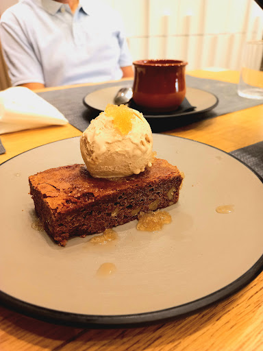 Dîner fin de semaine dernière avec mon épouse et une amie, nous avons réservé pour bénéficier d'une table sans attente. Nous avons eu le temps de déguster un très bon Ribera "Antidoto" sur le conseil du serveur. La formule est parfaite, très bien qualibree, permettant de découvrir le travail du chef de cuisine qui transforme des produits frais avec talent et offre un résultat gustatif varié et équilibré. La première entrée à partager offre une palette gustative très maîtrisée. Pour les entrées suivantes, chaque proposition offre son originalité avec une note particulière pour la dernière mêlant la juste température d'une cuisson "basse temperature" et des textures rendant l'ensemble savoureux. Le plat principal, filet de cabillaud, était simplement parfait. Le budget pour cette prestation particulièrement réussie est plus que maîtrise et franchement doux. Décor épuré, bien pense avec un joli coin de verdure qui apporte de la fraîcheur. Un seul point critique, qui ne dépend pas uniquement de l'établissement, mais des clients. Le restaurant était plein et la nuisance sonore de chaque table a rendu la communication très difficile, voire impossible, entre nous trois. Cela gâche un peu notre plaisir. Le respect du travail en cuisine et des autres convives devrait permettre une dégustation encore plus plaisante. Tentez de sensibiliser vos clients à un effort sur le niveau de leurs conversations pour respecter la convivialité de tous. Une certitude, nous reviendrons pour une nouvelle expérience. Bruno...