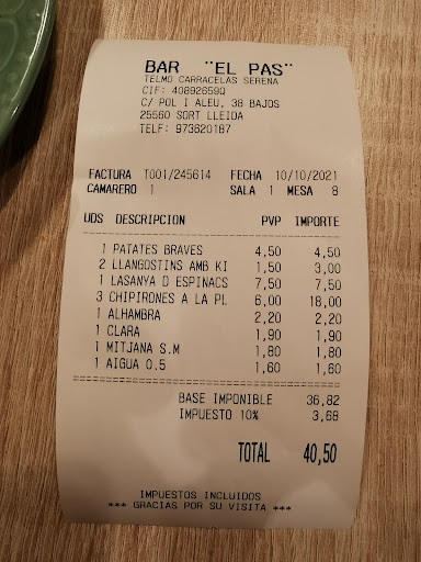 We had a wonderful dinner at El Pas de Telmo on our last night in Sort. The restaurant opens at 20:30 – we ate outside and had a lovely, relaxed evening. The food was excellent, the staff incredibly friendly, and the prices very reasonable. It really made our final night in town feel special.
