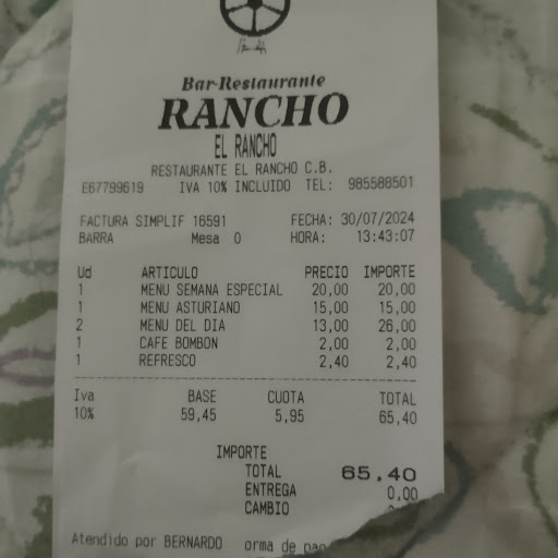 Soy ainara y vivo y residuo en Madrid. Tengo 16 años y conocí este maravilloso lugar con tan solo un mes de vida, aprendí a dar mis primeros pasos en este acogedor lugar con tan solo un año y un mes. No sé lo que me deparará el futuro, sí que todos los años tengo que venir aquí para abrazar a esta maravillosa familia y a degustar su gran comida. Antes ya me traía mi mamá en su vientre y ahora, por fin me decido a escribir lo que siento por este maravilloso entorno familiar. Hablamos del restaurante -El rancho- situado en Folgueras, 106, Soto del Barco, Asturias. Es un restaurante creado para atender con todo el amor y respeto al cliente, fue creado por Bernardo y Rosa en 1988, durante todo este tiempo he podido comer y saborear el delicioso manjar que te ofrecen. Su carta además de asequible al bolsillo, no tiene comparación ninguna en sabor y calidad a cualquier otro restaurante, bien sea de la zona o de otro lugar de España. Hoy día esta dirigido por el hijo de Bernardo y Rosa, Berni, con el control, acomodo y servicio de mesas y y por Aldeoni un brasileño que controla la comida asturiana como el mejor de la zona (Las fabes, los cachopos, tanto de carne, como de pescado que nos ofrecen, el pollo, las croquetas, las sopa de cocido, la sopa de marisco, ni que decir de sus maravillosos postres caseros) en fin toda la carta prueba de todo ello que cuando te vas del lugar te vas totalmente satisfecho con la idea de volver al día siguiente, acompañados de un gran equipo profesional por su atención y su rapidez en el servicio. Aconsejó que si queréis venir a comer, llaméis y reservéis antes porque es muy difícil encontrar hueco para comer en este...