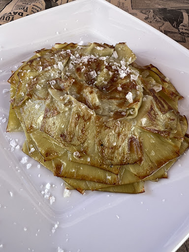 Read moreGrata sorpresa. La verdad es que solo pensábamos tomar el aperitivo pero vimos salir un cachopo y, ¿quién se resiste? La verdad es que no nos arrepentimos. Tienes una carta que se divide en tapas, muy ricas si quieres probar un poco de todo, tostas y platos o raciones completas. Las flores de alcachofa estaban muy ricas, el rabo de toro y el flamenquín también, las croquetas no las destaco especialmente, y como hicimos ruta de senderismo previa, de postre nos pedimos unos torreznos. En fin, ya si te metes en faena... Por cierto, los vinos muy...