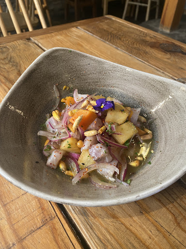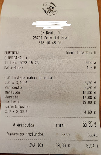 Read moreLuces y sombras así podría definir nuestra experiencia en este restaurante. Probamos varios platos a destacar la ensaladilla con un toque picantito y con diferente texturas al añadirle unas huevas, pedimos también la croqueta de kimchi que la podría definir como interesante, muy curioso el exterior de un arroz verde crujiente. Tartar de atún muy bueno y la costilla de ternera. De postre una tarta de queso muy cremosa y rica y una pannacotta que no le supe pillar el sentido. Aquí viene la sombra, pedimos unas croquetas de jamón, a dos euros la unidad pensando que eran caseras y para nuestra sorpresa tuvieron la poca vergüenza de ponernos unas croquetas de Mercadona y digo esto a sabiendas del tipo de croquetas que son porque somos consumidores de ellas cuando no tenemos de otras en casa. Hubiese preferido que nos dijeran que no tenían al igual que hicieron con las ostras que ponernos esas croquetas entiendo que pensando que no nos íbamos a dar cuenta, vamos que nos tomaron el pelo y nos engañaron. Es una pena porque sitios diferentes en colmenar hay pocos, tenía ganas de volver y probar algunos vinos y otros platos que llamaron mi atención, pero tras este detalle tan sumamente feo no volveremos y tampoco lo puedo recomendar,en...