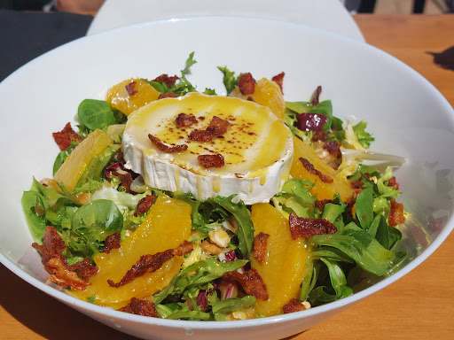 Carta no muy extensa (para mí algo bueno) pero todo lo que probamos con muy buena calidad y bien elaborado. Ensalada con rulo de cabrá rica y abundante (para dos) que como único defecto quizá le faltaba un poco de "plancha" al rulo. La alcachofa con huevo poché nos pareció muy buena, con la alcachofas bien hecha, tierna y con sabor, y el huevo en su punto, y el crujiente le daba un toque perfecto, sin duda un acierto. Pedimos también secreto y también muy bueno, sin alardes innecesarios, pero producto de buena calidad, tierno y con sabor, y de cantidad más que de sobra. Por último pedimos el postre de la abuela (donuts con caramelo, crema de dulce de leche y helado de pistacho, espectacular y nada empalagoso, al contrario de lo que pude parecer por los ingredientes. Esto, 5 cervezas tostadas 0,0 (es lo que tiene ir en moto), 2 cafés y 2 chupitos fuero 56€ de cuenta. Seguro que volveremos a probar otros...