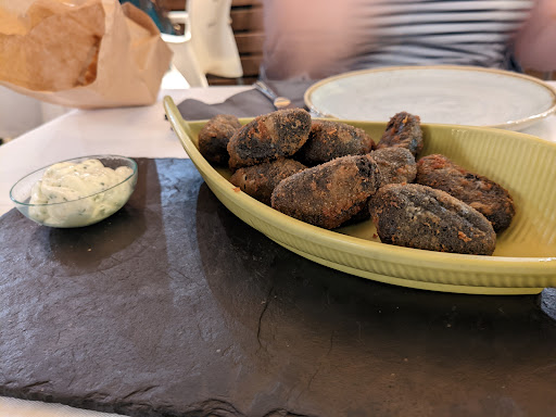 Read moreTomamos cena para dos en una noche de verano. La cena empezó muy bien, con unas croquetas de pescado verdaderamente fabulosas, lo mejor de la noche. Después probamos el braseado de verduras, que también resultó enormemente satisfactorio, con algún detalle original, nada grasiento y muy sabroso. De estos dos platos destaco el buen hacer de la cocina, lo ligeros que quedan y sus potentes sabores. El problema vino al final, ya que habíamos elegido algo que según la carta eran "Tacos de entrecot" pensando que sería algún tipo taco mexicano. Pero al llegar a la mesa descubrimos que no solo se refería a "trozos cúbicos de entrecot" sino que la procedencia de éstos era dudosa y que se servían empapuzados en una especie de salsa de miel y queso picón. Tal vez si la cantidad no hubiera sido tan excesiva la sensación no habría pasado de sorpresa. Pero lo cierto es que nos encontramos cerrando la cena con un plato inmenso, muy pesado y monótono de carne francamente correosa. Nos chocó mucho que, dado el poco afortunado nombre del plato en carta, los camareros no adviertan de la posible confusión a los comensales. Desgraciadamente este detalle nos dejó un sabor de boca desagradable y pesado a lo que estaba siendo una buena cena. El precio se nos hizo algo caro y los camareros, salvo por el mencionado detalle, son...