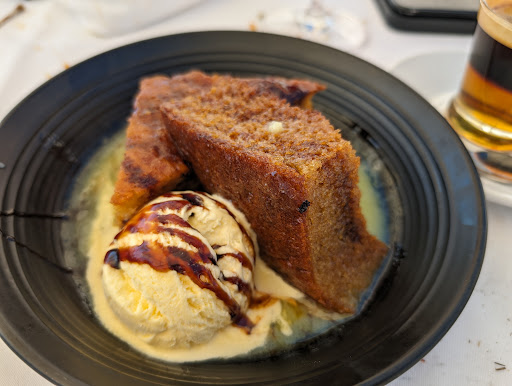 Pedimos una lubina, que compartimos, y venía nuevamente con ajo crudo, algo muy raro en este tipo de pescado. Al comentarlo, la camarera nos respondió que “los clientes lo piden así”. Es la primera vez en mi vida que veo una lubina preparada de esa forma. Un plato muy flojo y alejado de lo que esperábamos.