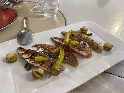Read moreHe comido con mi pareja. Me habían recomendado el sitio unos amigos diciéndome que era lo mejor de la zona que conozco bien y he ido a probar. Me ha parecido muy bueno. No es económico pero vale mucho la pena. Platos bien elaborados y muy bien presentados y de excelente calidad. Bebida: agua, una caña y dos copas de vino. Entrantes compartidos: Ensaladilla tártara ( perfecto el punto de encurtidos), carpaccio de gamba roja (excelente, emplatado sobre un fondo de gazpacho verde) y Gilda de salmonete (llena de diferentes texturas con un muy buen salmonete marinado). Algún punto excesivo de sal. Plato principal compartido: Rodaballo. Ración más que suficiente para dos con una excelente guarnición. De postre flan de boniato con espuma de caramelo. Bueníiiiiiisimo. Un café con hielo.