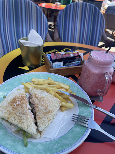 Read moreEncontré el costo exagerado del jugo de naranja que un cartel dice ser fresco (con una foto apetitosa) cuando en realidad es una bebida vaga y químicamente naranja, servida en un vaso de tamaño modesto ya ocupado por un enorme cubo de hielo. Cuando me sorprende el camarero del precio de esta bebida, que no es muy sabrosa, que es más alto que el precio de llamada del desayuno, me dice descaradamente la proximidad de la playa mientras hay una plétora de restaurantes por todas partes a los precios correctos. El cartel es engañoso, el departamento de fraude del país debería ser incautado.