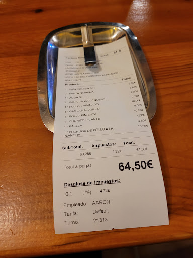 Read moreAvoid, they will try to scam or take advantage of you here! My 79 year old parents are in Lanzarote for a few weeks. They visited La Barrica and found the food good and staff friendly, so returned numerous times. Unfortunately a waiter took advantage of them on Saturday night and sold them a €72 bottle of wine, without telling them the price. They were not shown a wine menu and would not have taken it if they knew it was that expensive. They queried the bill at the end and after some arguing over and back, they took €4 off the bottle of wine...they paid €67.95 for it! They found the same wine in a restaurant nearby, on the following night, for €38! They won't be returning! To follow up from my review from my 79 year old parents. The owner responded suggesting my parents were told the price of the wine and agreed to it. This is not true. He also claimed they were sold a bottle of Reserva wine and not Crianza, I will attach the photo to show it was a crianza. If the owner would like to get in touch with me to refund the difference in price between the crianza and the reserva, my parents would appreciate that. And maybe don't try to take advantage of...