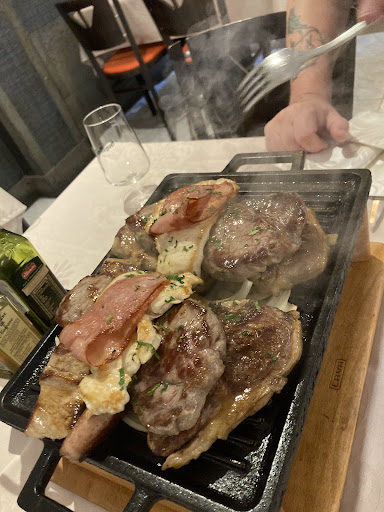 Good service. We had garlic prawns and the Diablita seafood in spicy tomato sauce to start. Good size portions and tasted of what they were supposed to. 2 mixed grills for mains. Steak, chicken, lamb chop, Iberian Secreto pork, Spanish sausage, and a random piece of bacon. Pork was the best Iberian Secreto I’ve had as have had it before in other places and was really tough but this was lovely. The lamb chops were a bit raggy but they brought us another which was much better. Chips were frozen steak chips but were hot and crispy. Veg was deep fried in thin batter like tempura veg, very tasty. Didn’t have dessert as unfortunately were Kalise ice cream based desserts, no fresh or...