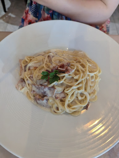 Read moreWe popped in here last night for dinner. The view from the outside tables is lovely across to the sea. Looking at the restaurant from outside does not do it justice. Looking at the signage above the restaurant it looks like a cheap and cheerful pasta house. That it is not..... The dishes were lovely. I had veggie lasagne, and we also ordered beef ravioli and carbonara with a side of chips. It came out piping hot and was delicious. The portions did not look huge but they were certainly very filling. The service was good and all the servers were attentive and...