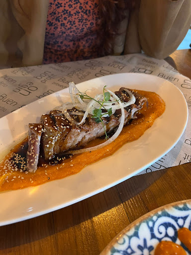 When I arrived at the restaurant, there were no other guests there, so I thought maybe the place was closed. I tried to make eye contact with a woman (who turned out to be the waitress) who was on the phone, to ask if the place is indeed open. After a while I realised she had indeed seen me, and she was not talking in the phone either, so probably waiting in line for something. I said «pardon», onto which she replied annoyed «siii», without even looking in my direction. I asked if they were closed, but they were indeed open, and she finally gave me attention, and showed me to a table. I ordered a steak with potatoes and a mustard sauce. I was told the mustard was cold, but it turned out that everything on the plate was cold. The waitress «explained» to me (she did not know english well, and I don’t know spanish) something about the meat being taken from the fridge, and being so large, so not the whole piece was properly cooked (or something like that). I asked why the potatoes also were cold- yeah, no, something-something about the heat on the stove not being even. Any way you put it, it does not make sense, as both the steak and potatoes were all done, properly cooked, but cold. I finally got the dish as it is supposed to be-warm, and I will give it two points only on the account that it tasted good, and the place looked nice. I don’t know if it was because I had sneakers and shorts on, or that I am a foreigner, but I am convinced they did this deliberately, and it was a truly...
