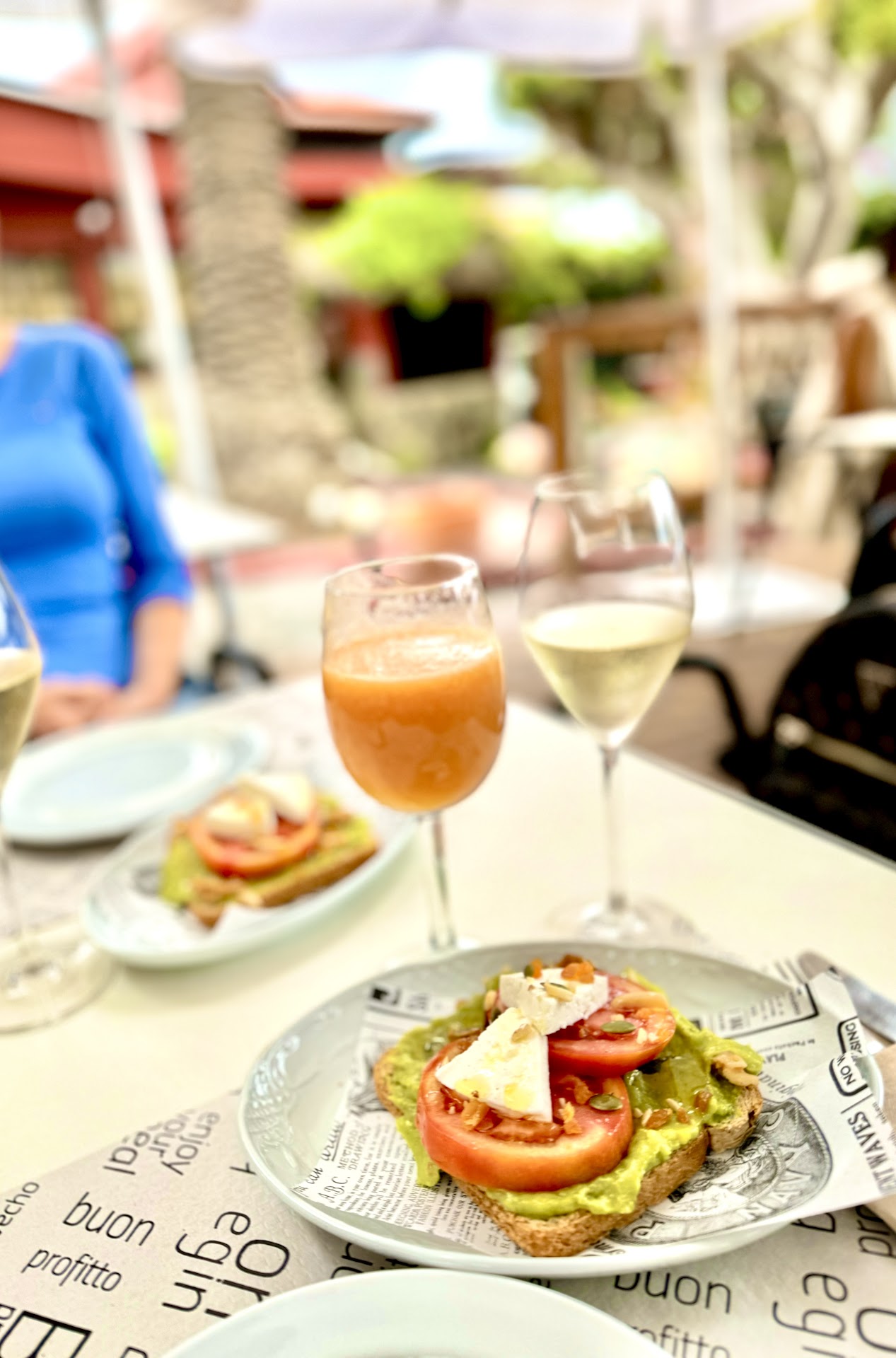 The brunch menu is a steal at €37 per couple, and saying it’s massive would be an understatement. It includes five plates, bread with butter and jam, yogurt with fruit, and a delicious homemade cake — all super fresh. The drinks selection is generous, with a coffee of your choice, water, natural juice, and a glass of cava.