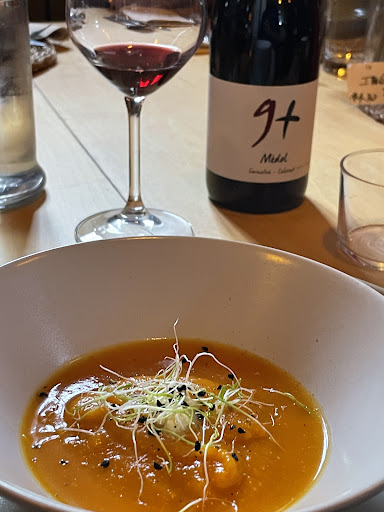 Read moreIncreíble. Una marvillosa experiencia slow food. Al llegar, y mientras tomábamos una IPA artesanal de la misma casa, espectacular, la maitre nos cuenta la historia del restaurante, que es una macía antigua, del siglo XII, que han logrado mantener de manera sustentable en equilibrio con el entorno, haciendo notar que han adaptado la casa a lo que la naturaleza manda. El salón es muy acogedor, de piedra. Se respira hogar. El menú degustación ofrece un recorrido por una gastronomía que hacehincapié en la calidad del producto, en lo local y estacional. La calidad de las texturas, sabores y aromas, es algo a destacar, así como la elección en la combinación de estos sabores, junto con un vino tinto muy bien elegido por la maitre, un garnatxa maravilloso, ligero y versátil, que preparaba perfectamente el paladar para el siguiente paso. El camarero impecable ofreciéndonos una explicación de cada plato y el detalle de las características y procedencia de los productos,contando a veces la historia de sus productores. En cuanto a la comida en sí, todo me pareció muy bueno. En especial, la caballa marinada, por su hermoso color, por el juego de texturas y temperaturas y por el aceite de primera prensa que era realmente increible en su sabor. Luego, la col asada con nabo, zanahoria, puerro y brócoli era una maravilla. Los sabores de la verdura eran intensos, con sabor a verdura de verdad (ya me entienden). Además, la salsa de la cual no me acuerdo lamentablemente el elemento principal ahora mismo, pero era parecido a un chimichurri, resaltaba los sabores increíblemente. La crema de calabaza con quenelle de remolacha, me pareció super sabrosa la quenelle. Finalmente, el huevo con setas y trufa, hermosa la presentación, y el huevo estaba perfecto. Algo que no es fácil aunque lo parezca, es hacer un huevo mollet, además de que lograron un perfecto equilibrio de texturas y...