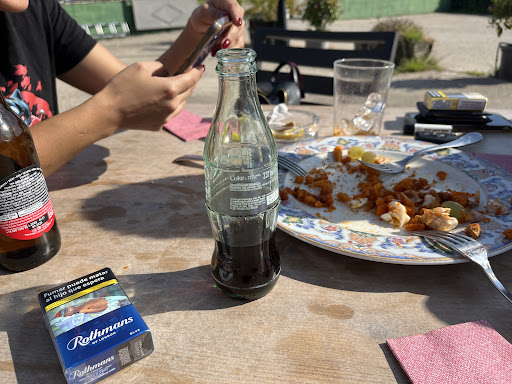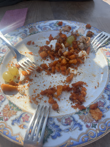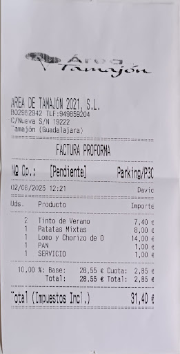 Read moreNo hay mucho donde elegir por la zona, por tanto, vale aquello de "ancha es Castilla". Carísimo cuando ves las raciones por el precio que vas a pagar, aparte de que te cobran el pan y algo llamado SERVICIO que no entiendo a que se refiere, quizá es que el sueldo del empleado se paga entre este concepto y las propinas. Lo habitual en las patatas mixtas es que la salsa venga aparte, para que yo pueda tomar la salsa brava y mi acompañante el ali oli, que por cierto, no lo es, se trata de mayonesa, vienen en popurri, es decir, todo mezclado por encima de las patatas. El chorizo y lomo a la olla es un chorizo escaso y una loncha de lomo, lo justo para que te hagas una idea de como es una y otra cosa. Obvio el detalle de que cuando pedímos el chorizo a la olla, no nos avisaran de que venia con patatas, justo después de haber pedido una ración de patatas, vamos, que me salen aún las patatas por las orejas. El pan lo habitual es que no te lo cobren, y el € que aparece en la nota en concepto de SERVICIO aún me trae de cabeza, no se que es lo...