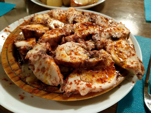 Quant al menjar, correcte bo i bé. Cal fer notar especialment que són racions molt generoses, i és d'agrair. En el nostre cas, vàrem agafar unes tapes (especialment tendre el pop) i un plat principal. Així mateix, podeu veure a les fotos la ració de corball (3 talls!, i al seu punt), o les postres de mató i mel, també amb tres trossos. Dit això, vaig trobar que tot és un punt massa oliós: ho vàrem constatar amb les patates braves i el corball, que ambdós plats tenien un excés d'oli (especialment el corball, que es fa a planxa i realment estava al seu punt). Dit això, bàsicament (no exclusivament) quant als plats principals tenen o bé carn, o bé marisc o cefalòpodes, trobant a faltar certa paritat amb carn de peix (només tenien el corball, fora de carta i en vàrem ser coneixedors de casualitat).